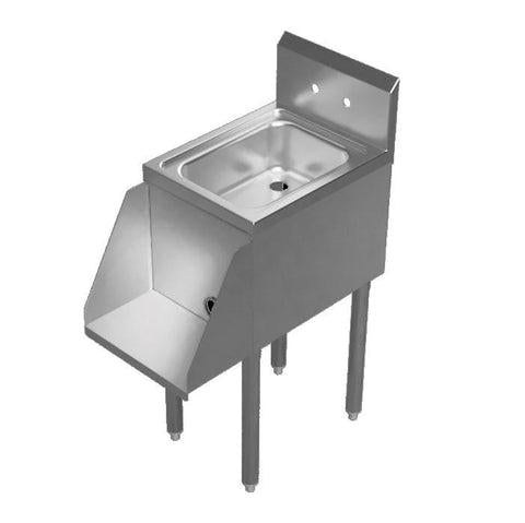 Blender Station, 12-1/2"L x 9-3/4"W x 6" deep sink with 4" center wall mount gooseneck faucet with hot & cold water, blender shelf with power cord access hole on front panel, 1-5/8" tubular stainless steel legs with plastic bullet feet, stainless steel construction, no lead faucet, ETL