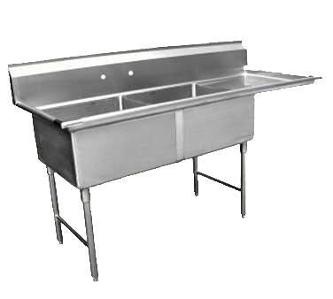Sink, two compartment, 57-1/4"W x 24"D x 45"H, 18-gauge stainless steel, 18" x 18" x 12" deep compartments, 18" drainboard on right, 11-1/2"H backsplash, 8" OC splash mount faucet holes, includes (2) 3-5/8" dia. basket strainers, stainless steel legs & side cross bracing, ETL